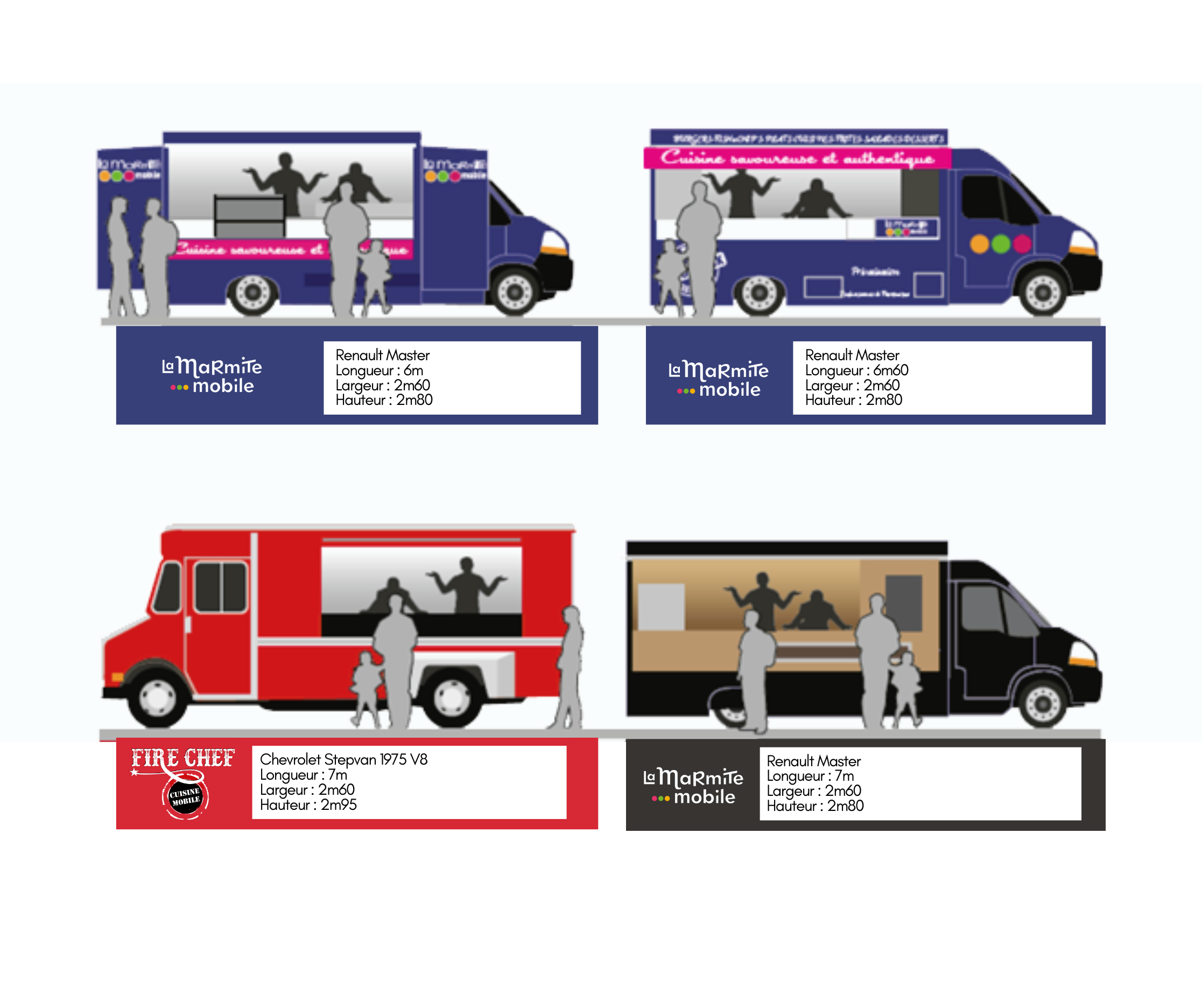 La Marmite Mobile, ce sont 4 camions équipés, propres et complétement autonomes en eau et matériel de cuisson (gaz ou electricité). Un simple branchement est nécessaire !