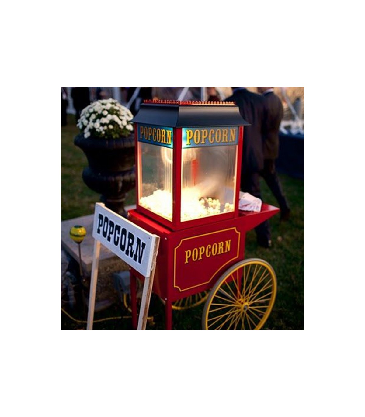 Cette machine à Pop corn sur son chariot dispose d'un design tape à l'oeil qui viendra ajouter une jolie touche fête foraine à votre évenement.